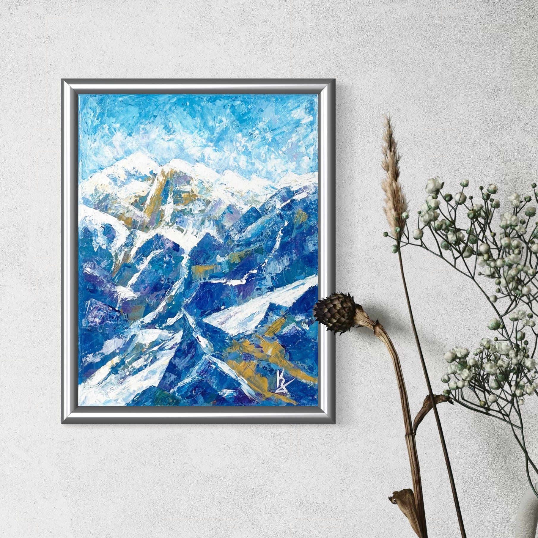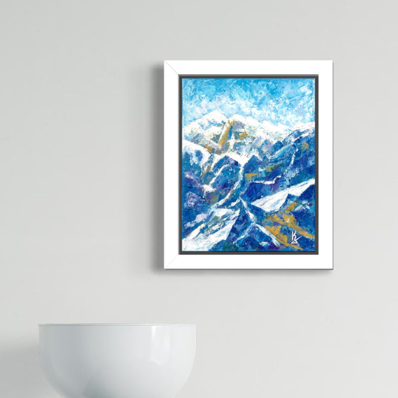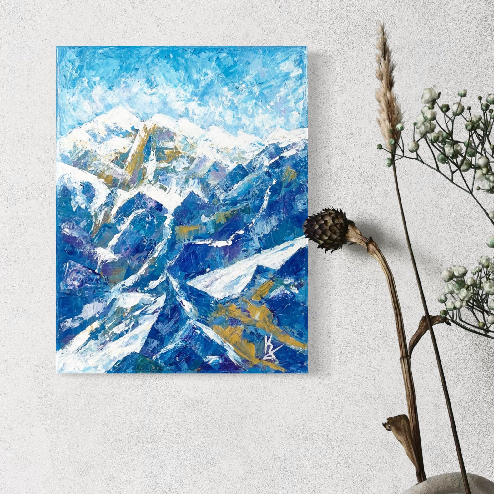 The textured artwork brings the crisp, dreamy atmosphere. A perfect depiction of a breathtaking dream destination, this piece invites a sense of adventure, serenity, and awe into any space.