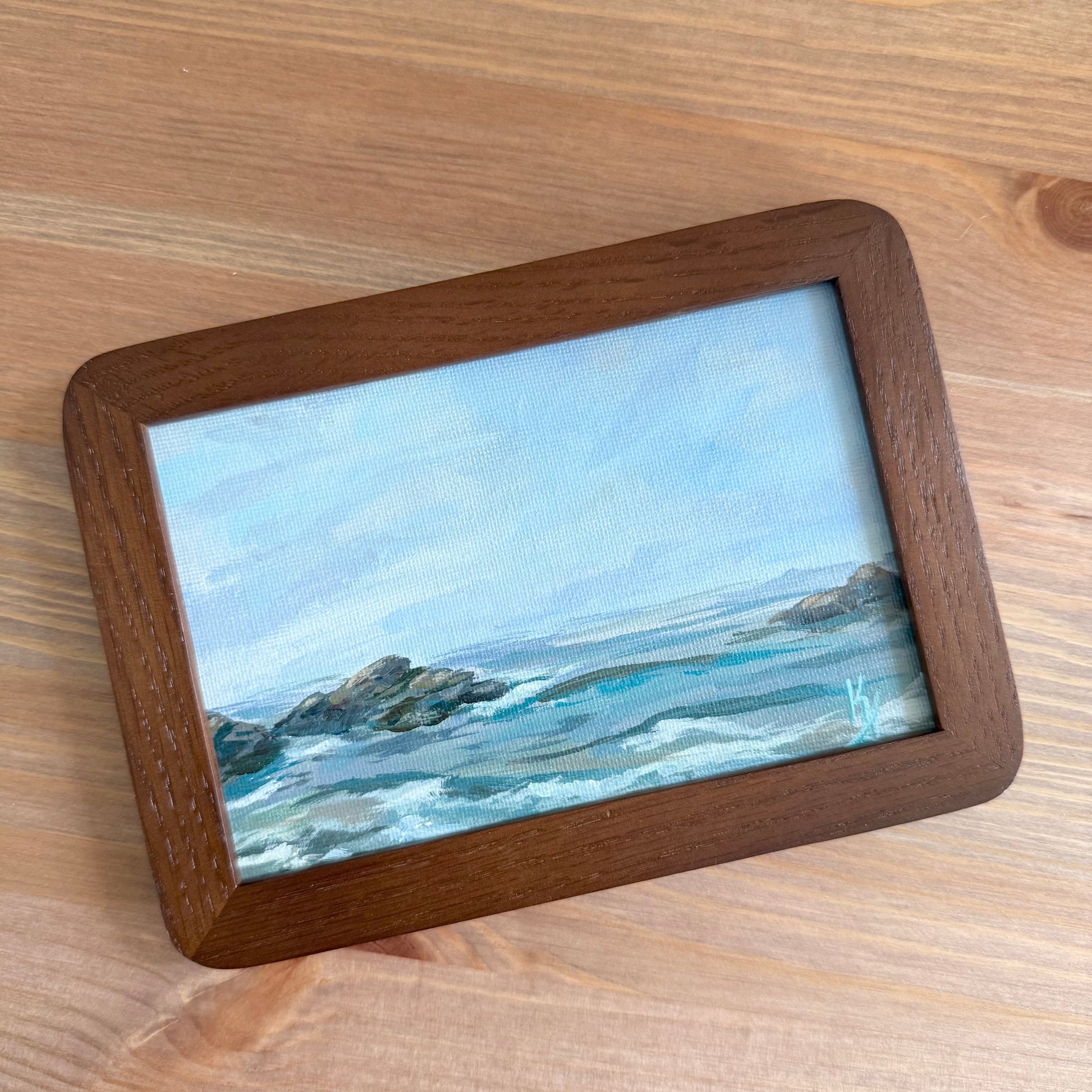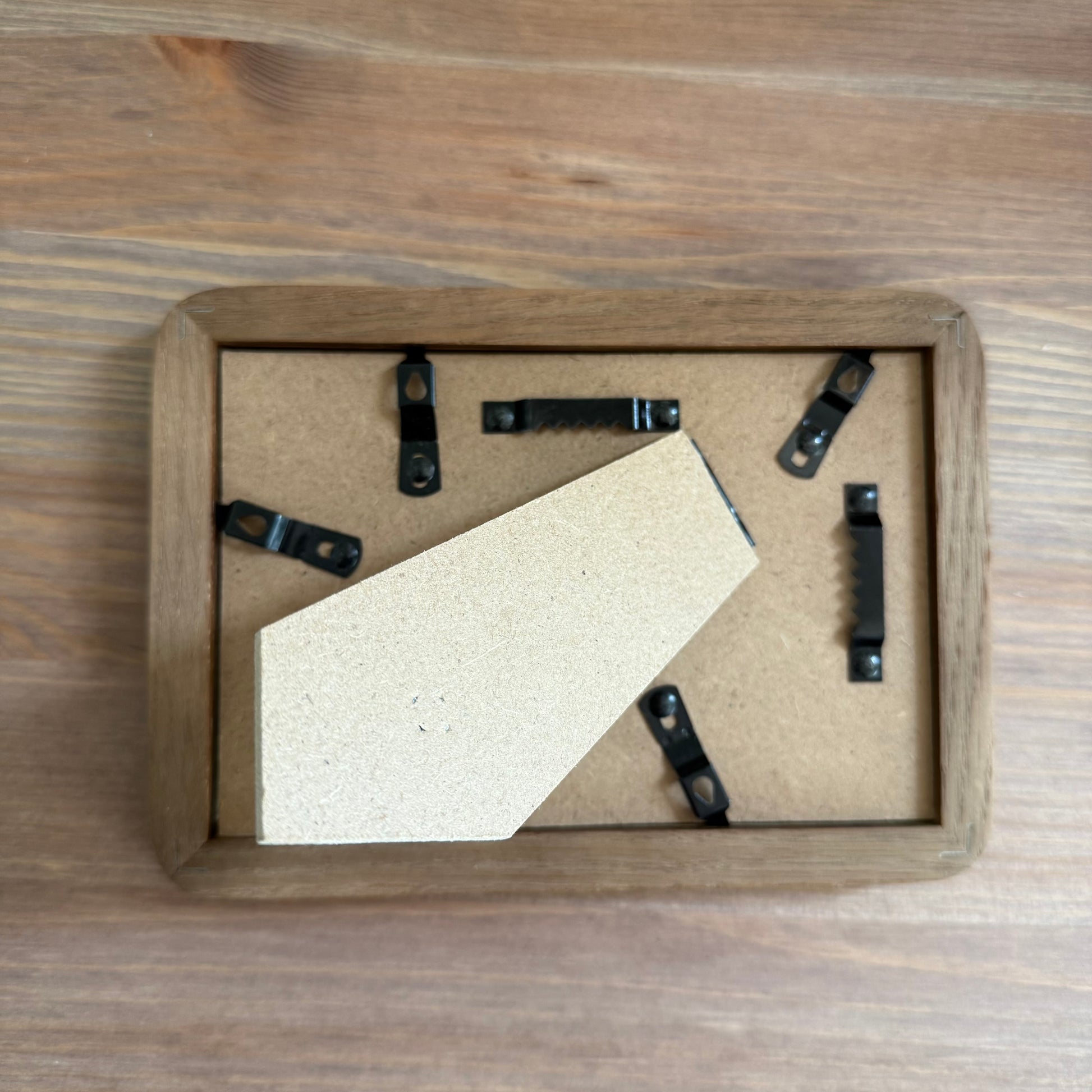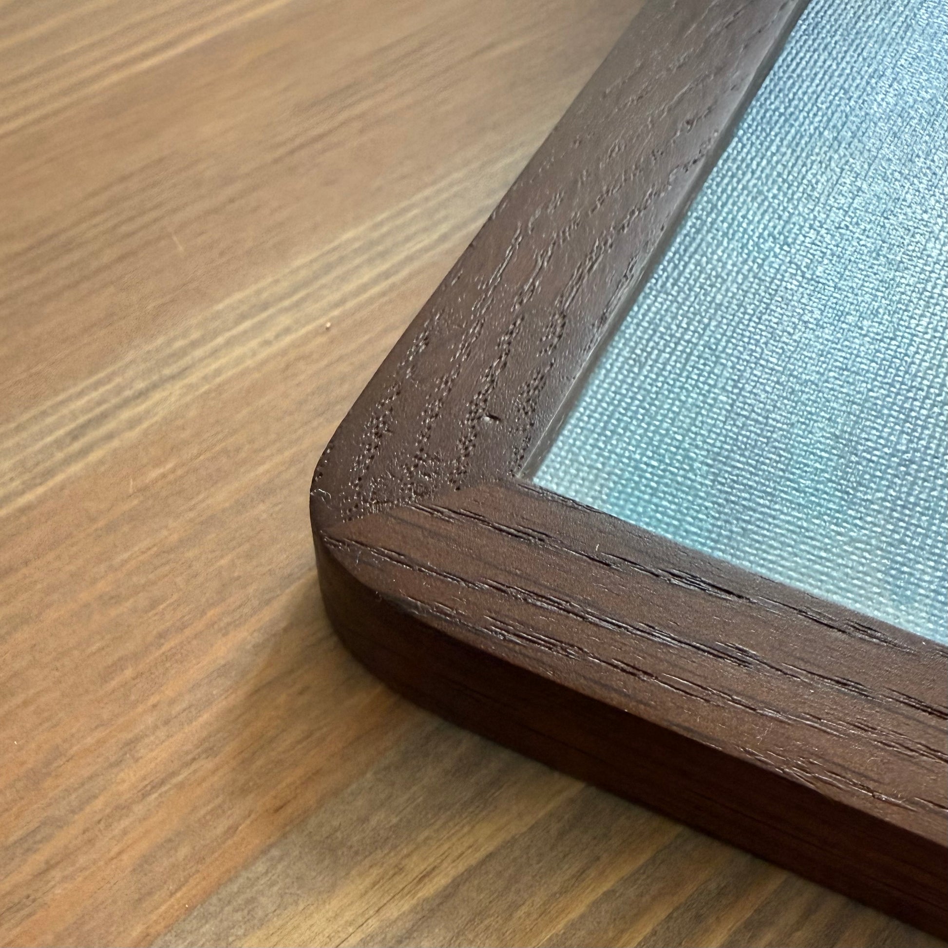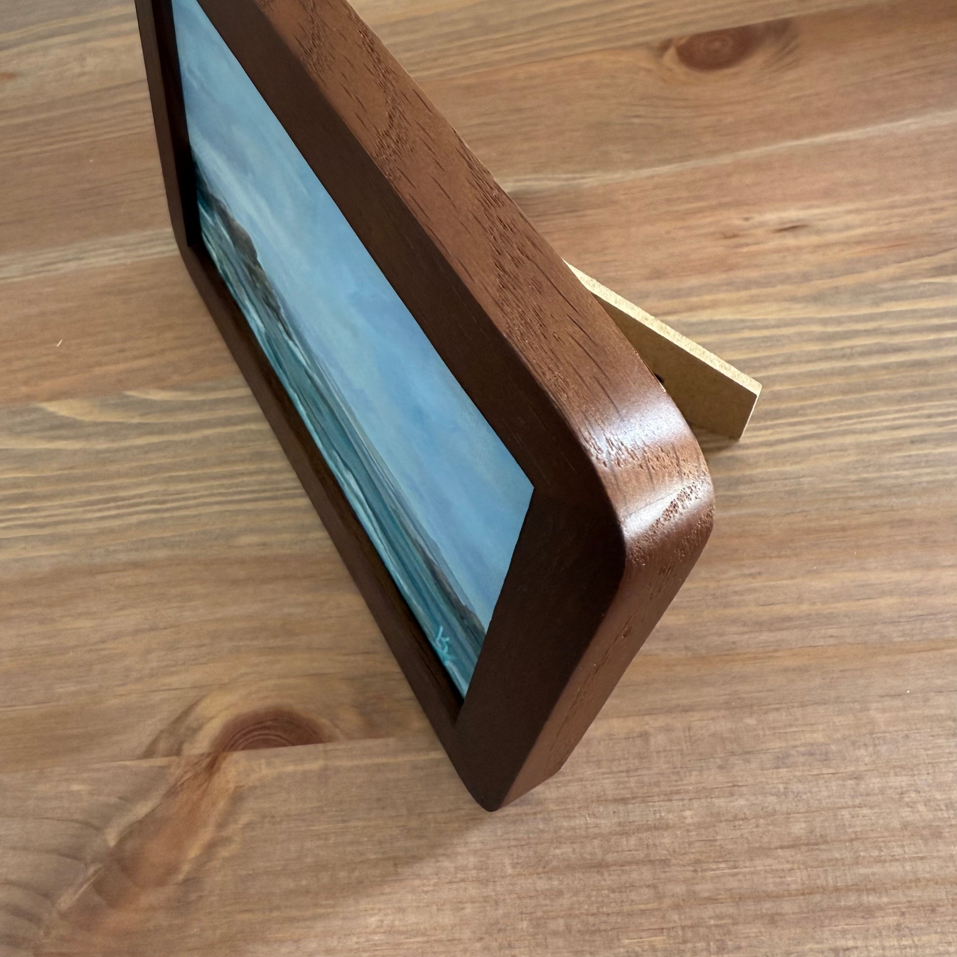 The artwork comes framed in solid mango wood and can both stand and hang, offering flexible display options to suit a variety of spaces.