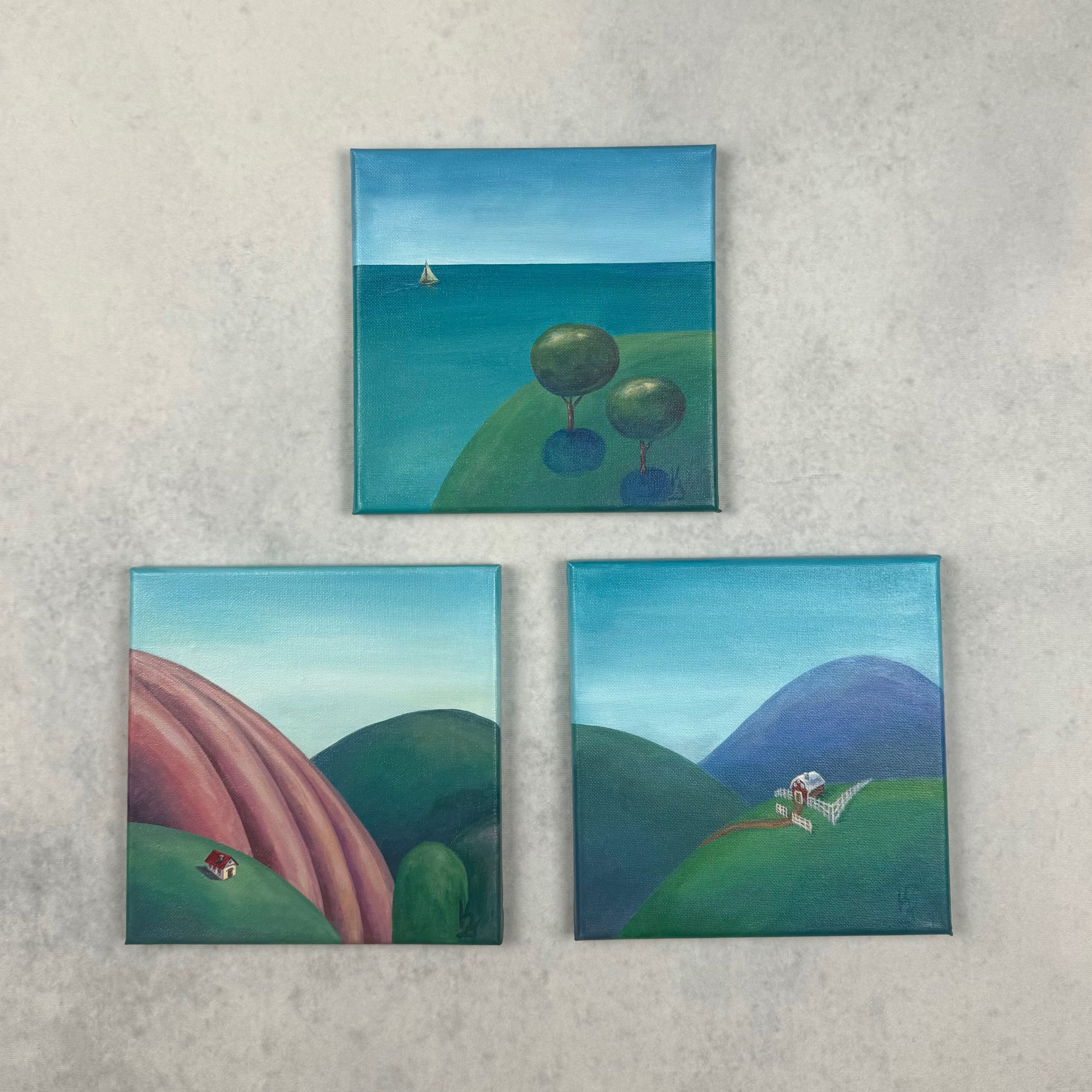 Set of 3 Signed Archival Prints from Original Painting. Giclée Prints.