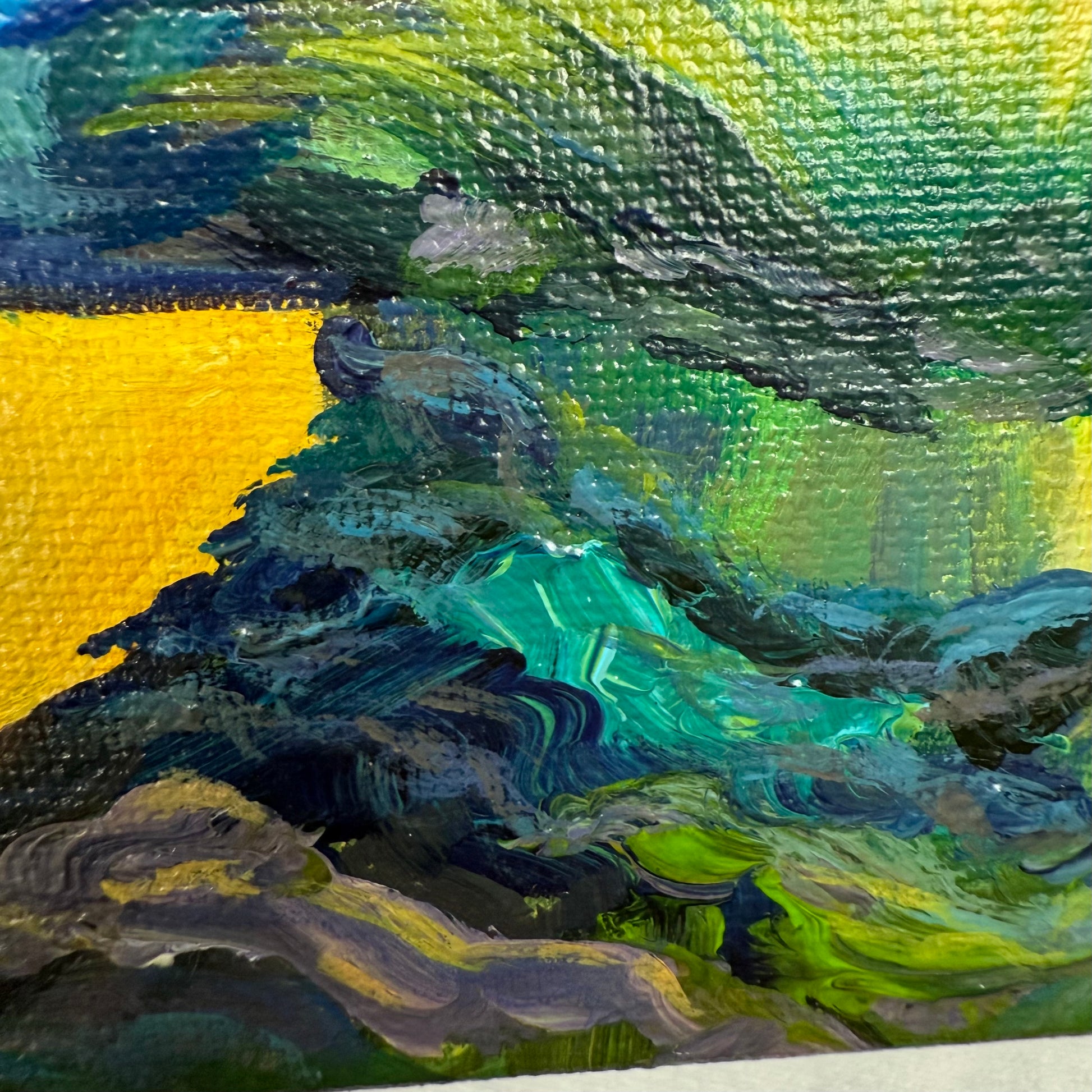 The painting on canvas is created using professional acrylic paints, and each piece is coated with a protective satin varnish, hand-signed on the front and signed and dated on the back. Comes with a certificate of authenticity.