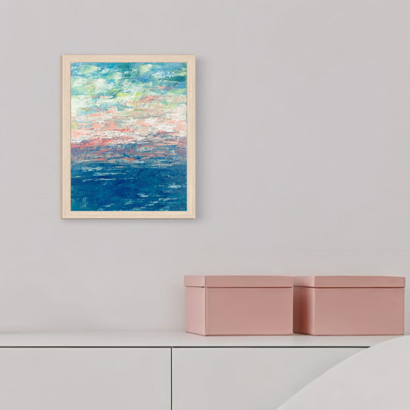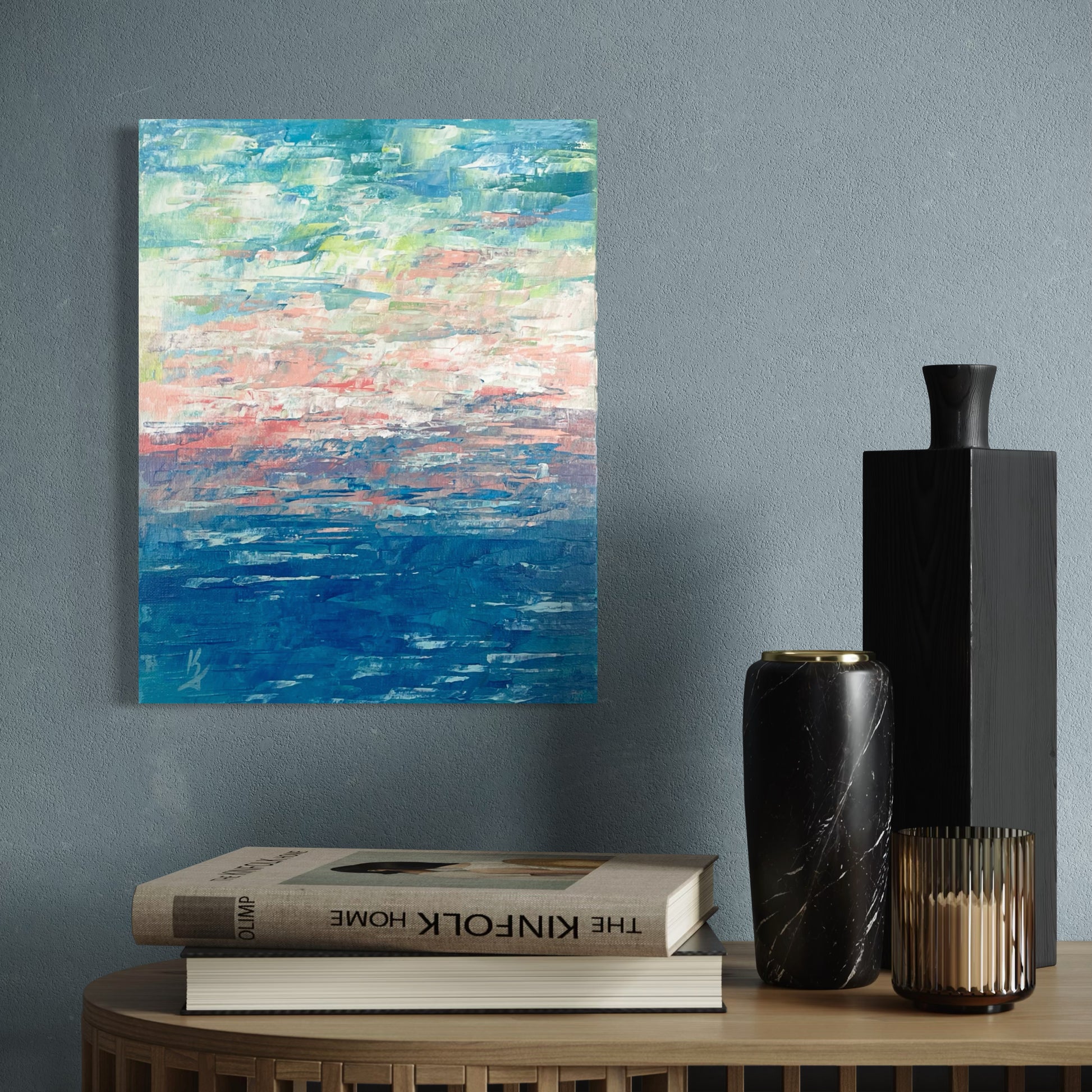 Created by my soul and hands original acrylic big water painting on canvas board with texture palette knife strokes and satin finish. Relaxing and optimistic.