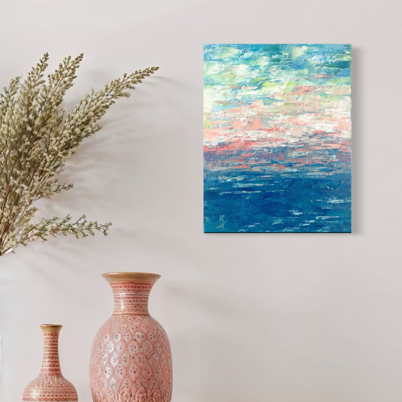The edges are fully painted in a seamless continuation of the artwork, offering a clean, modern presentation that doesn’t require framing. The piece is sold unframed but can be framed to suit your personal style if desired.