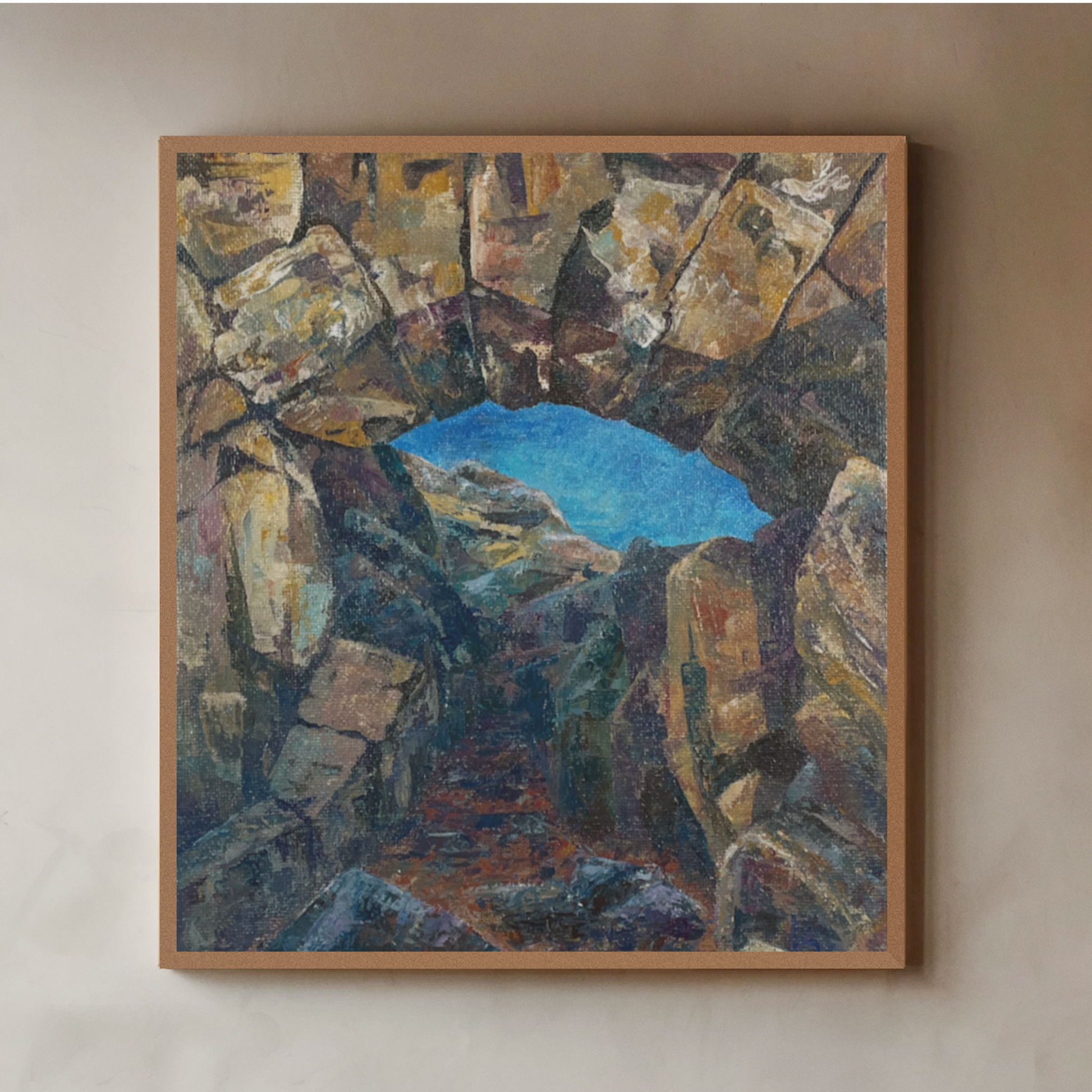 An arch shaped from ancient stones, weathered by time and shaped by the slow movement of glaciers. Painted in rich, earthy tones, it carries a sense of strength, history, and timeless natural beauty.