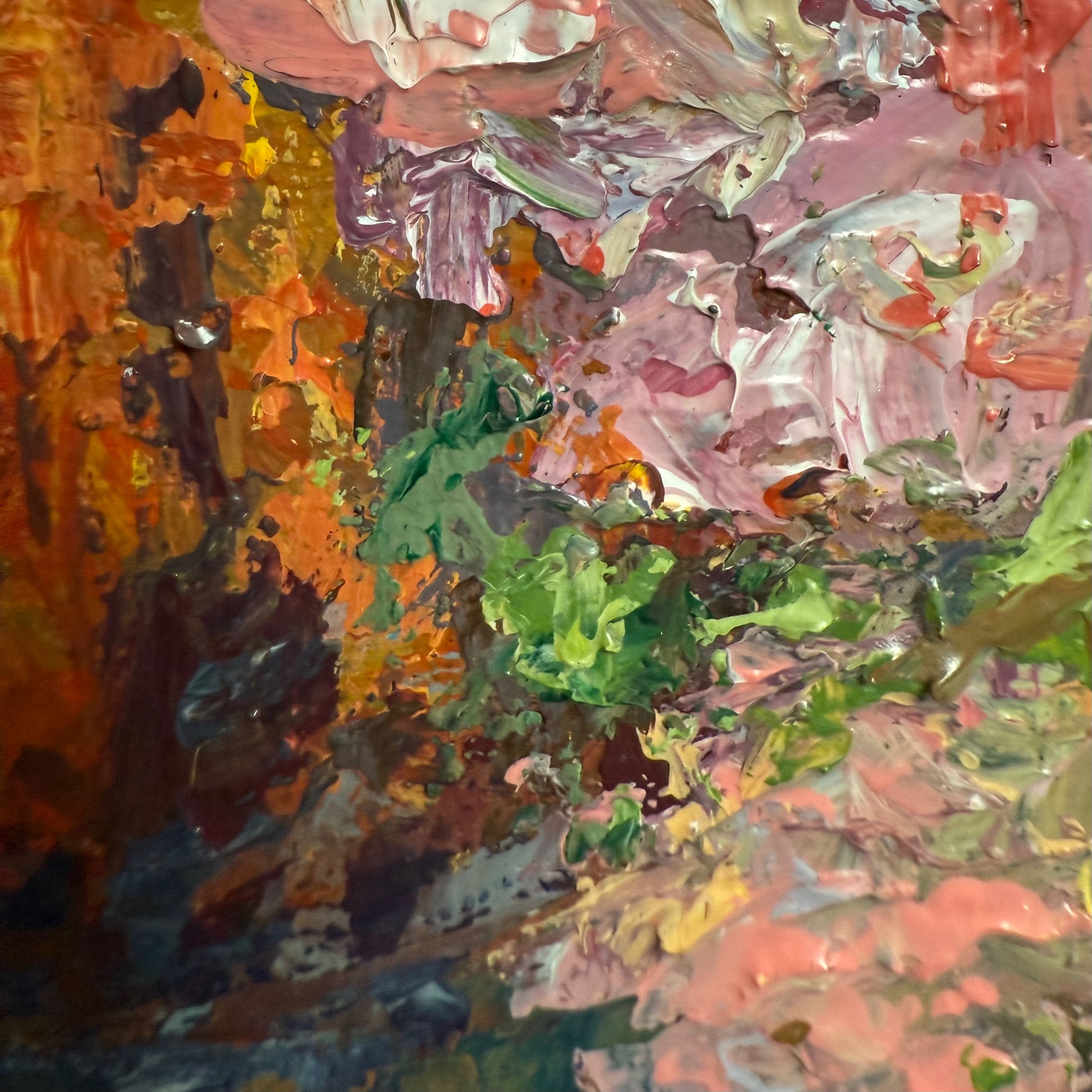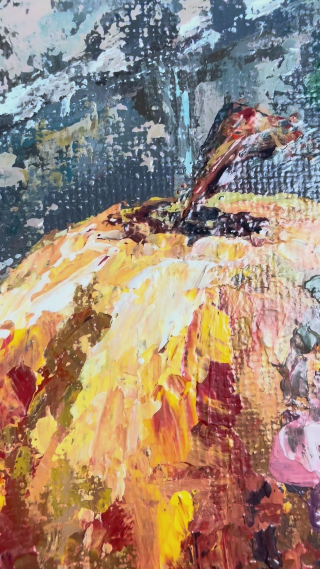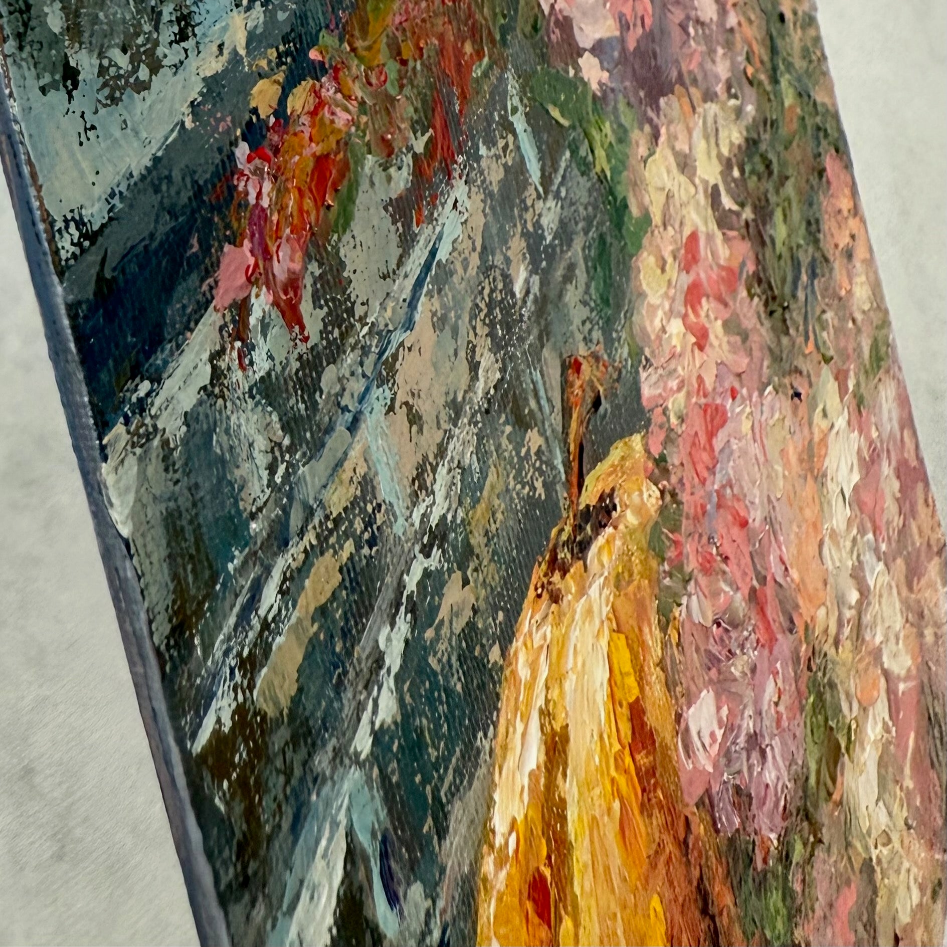 This painting on canvas panel is created using professional high-quality, non-toxic acrylic paints for vibrant, lasting color, safe for indoor spaces, and each piece is coated with a protective satin varnish, hand-signed on the front and signed and dated on the back. Comes with a certificate of authenticity.