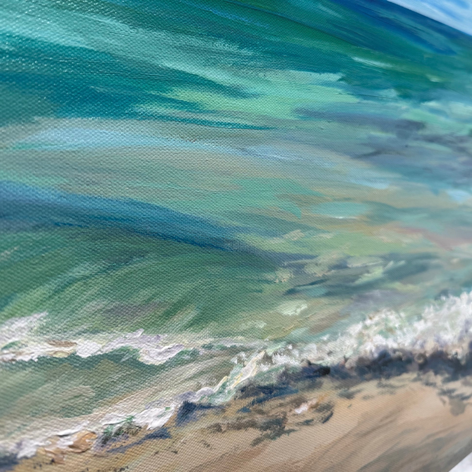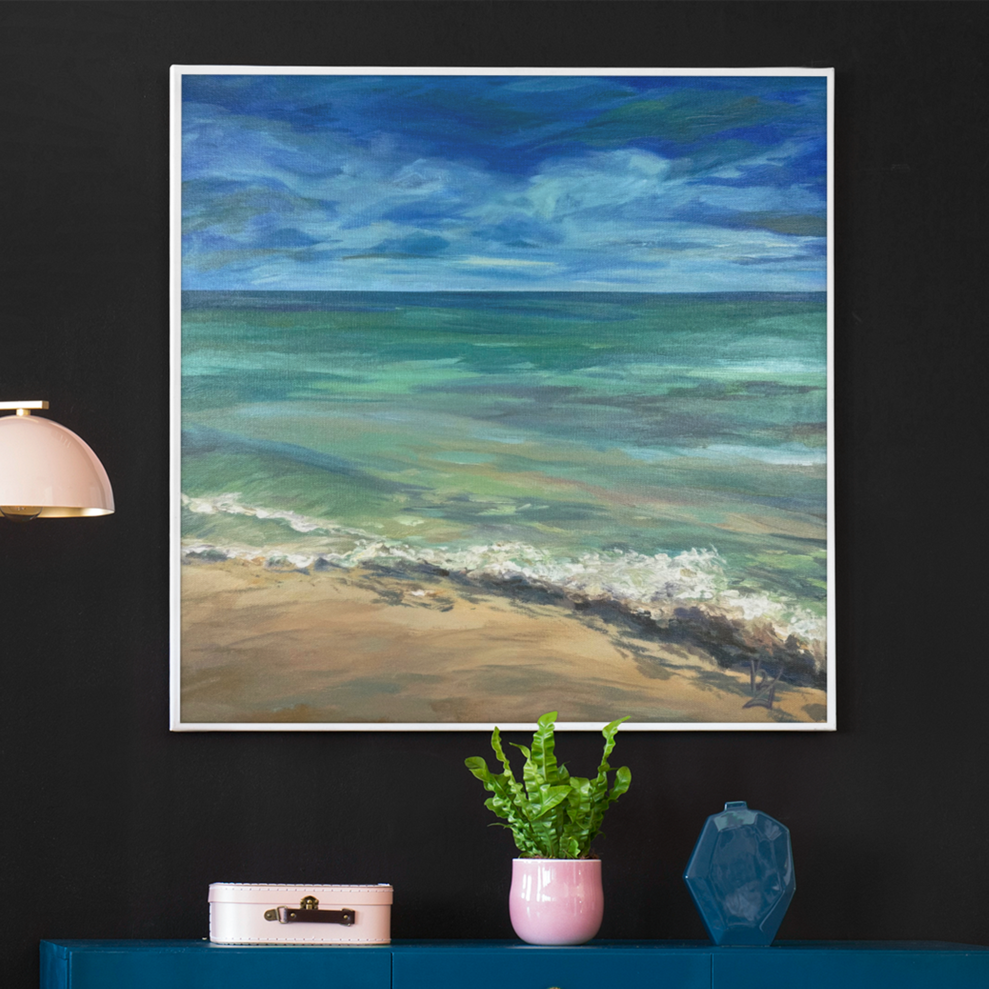 A peaceful celebration of nature’s vastness and grace, this piece invites the viewer to lose themselves in the calm, meditative embrace of the big water and sky.