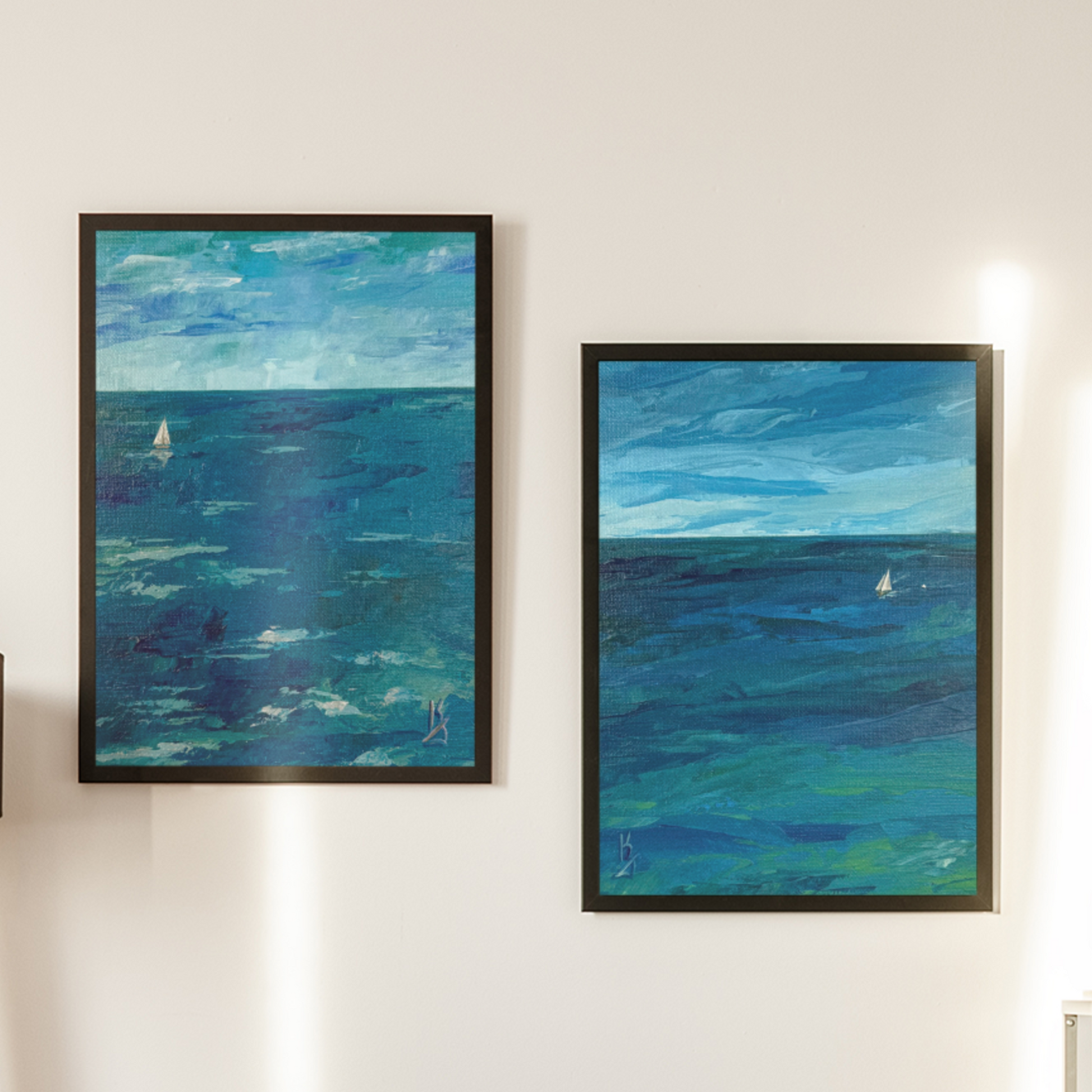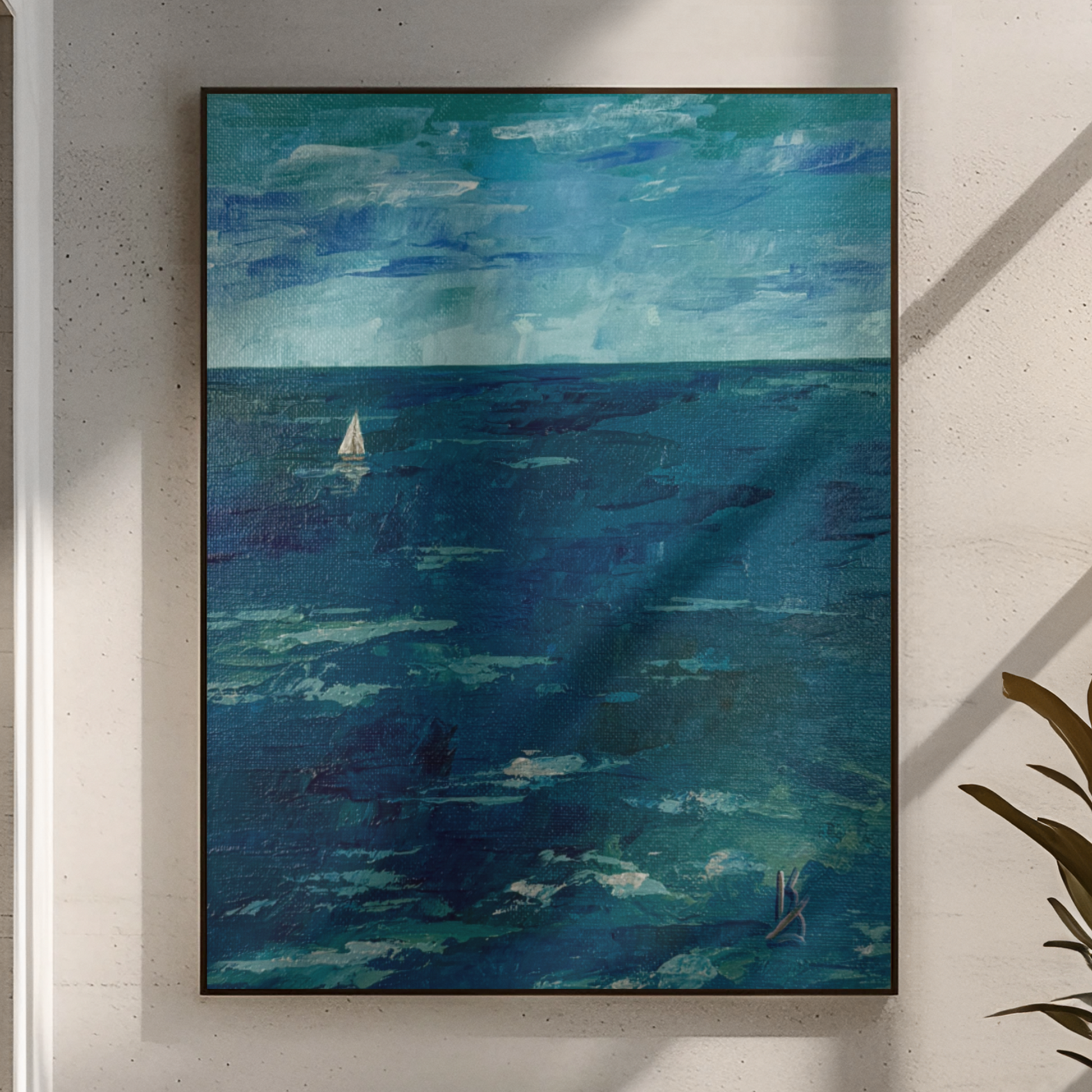 Teal water. Sailboat. Print