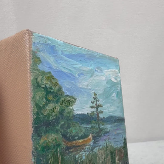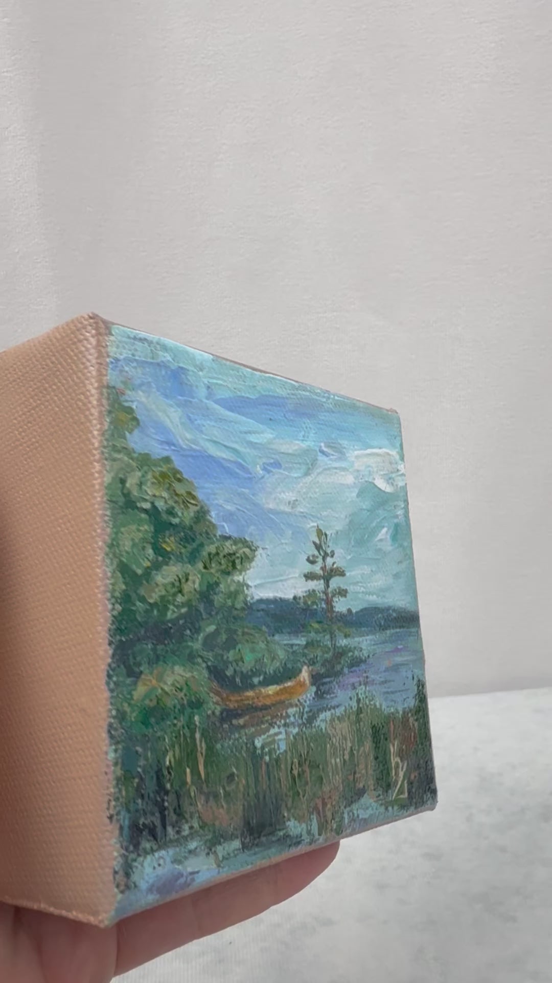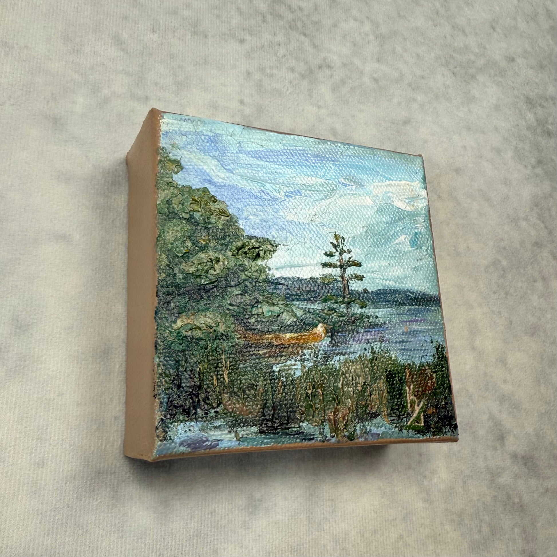 Original acrylic paintings with textured palette knife strokes, capturing moments from a Voyageurs National Park trip.